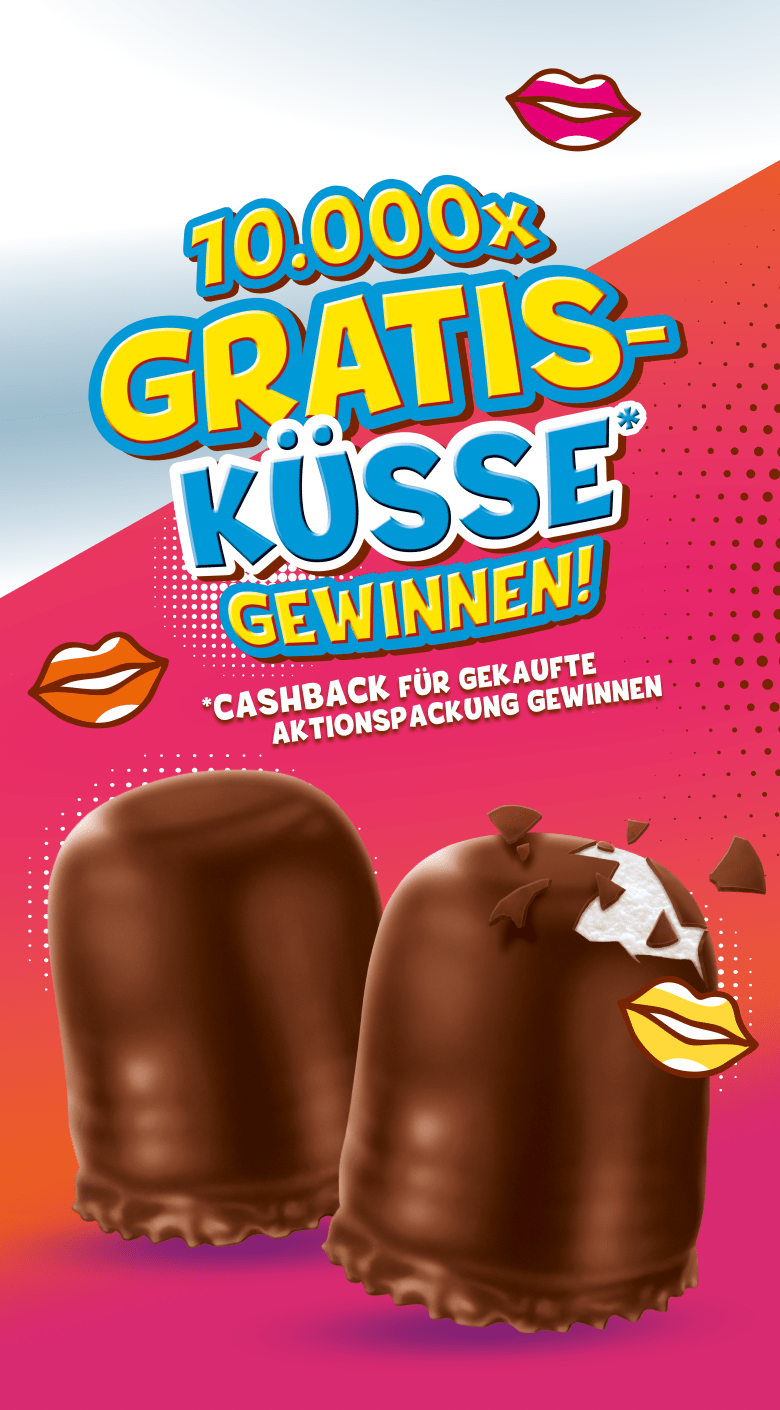 Ab dem 01.10.2025 bis zum 28.02.2026 hast du hier die Möglichkeit 1 von 10.000 Gratis Küssen zu gewinnen. Dies bedeutet, dass Du im Gewinnfall das Geld für deine gekaufte Aktionspackung überwiesen bekommst. Das Konto muss sich im SEPA-Raum befinden. Eine Barauszahlung des Gewinns ist nicht möglich.